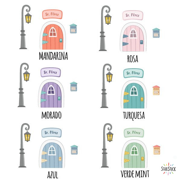 Decora la teva llar amb una petita porteta per rebre amb tots els honors al molt honorable Ratolinet Pérez. L'objectiu és aconseguir que tingui accés ràpid i directe a totes les habitacions infantils i aconseguir així que pugui fer la seva feina amb la màxima facilitat. Tria el color que més creguis que li agradarà i enganxa aquesta porteta màgica al sòcol de casa teva.