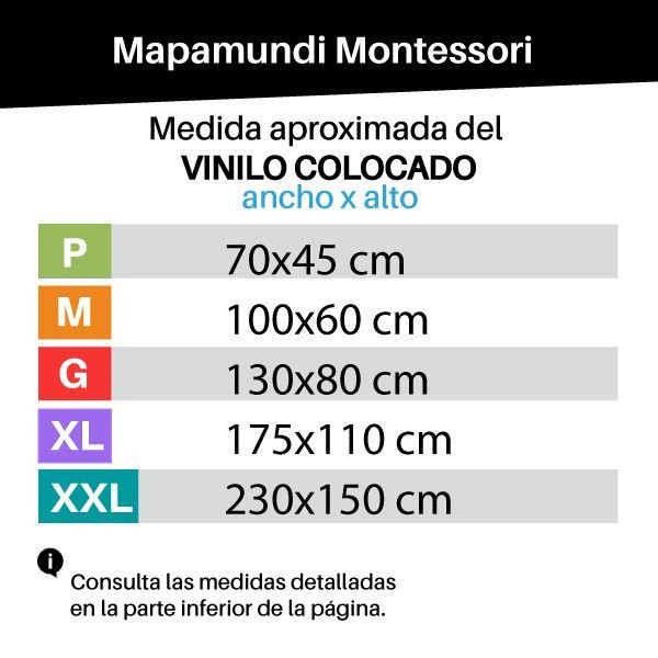 Personalitza el teu vinil amb nomSi ets un amant de la natura i t'agrada conèixer el món animal, els nostres vinils mapamundi amb representacions realistes de diferents animals són perfectes per a tu. Aquests mapes decoratius segueixen l'estil realista de l'educació Montessori i mostren una gran varietat d'espècies d'animals del món. A més, els nostres vinils són fàcils d'instal·lar i s'adapten a qualsevol superfície llisa, per la qual cosa els podràs col·locar a la paret de la teva habitació, espais de joc, salons, escoles... El resultat final és espectacular, ja que els nostres dissenys estan realitzats amb la màxima qualitat i cura del detall.