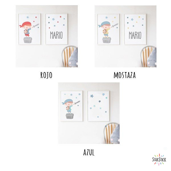 Personalitza el teu vinil amb nomMeravellosa combinació de làmines infantils amb un súper nen pirata. Si es desitja, es pot personalitzar amb un o dos noms. Làmines decoratives exclusives de StarStick, perfectes per decorar habitacions de nens i nadons.