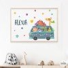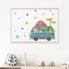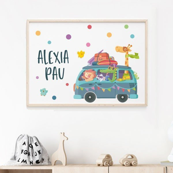 Làmina infantil amb la il·lustració d´una furgoneta plena d´animals aventurers. Una autèntica meravella per decorar espais infantils.
