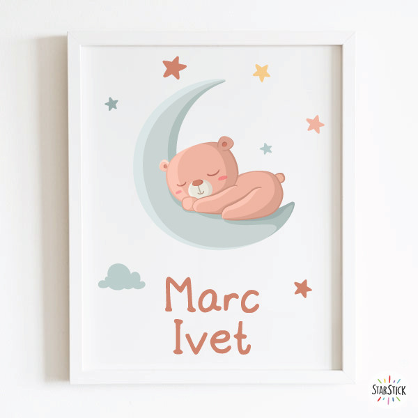 Personalitza el teu vinil amb nomQuadres infantils de paret personalitzables amb el nom del nadó. Làmines de gran qualitat combinables amb altres productes de la mateixa col·lecció Ós a la lluna.