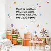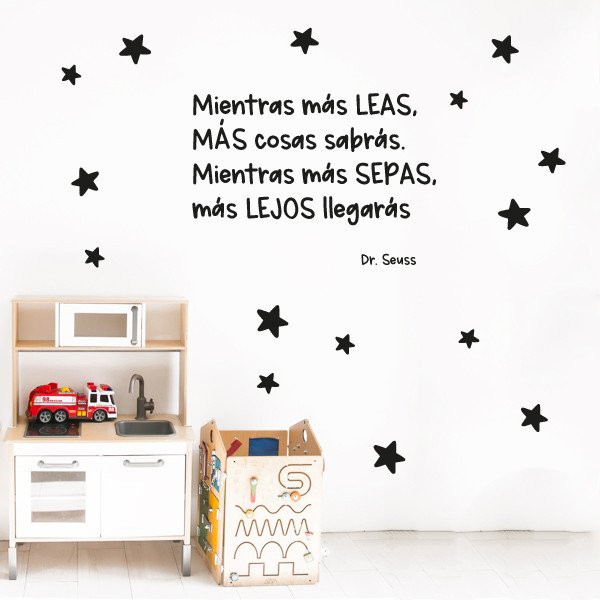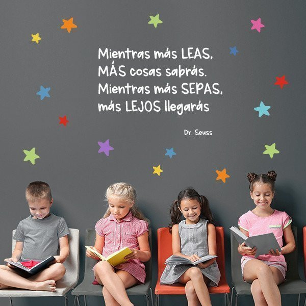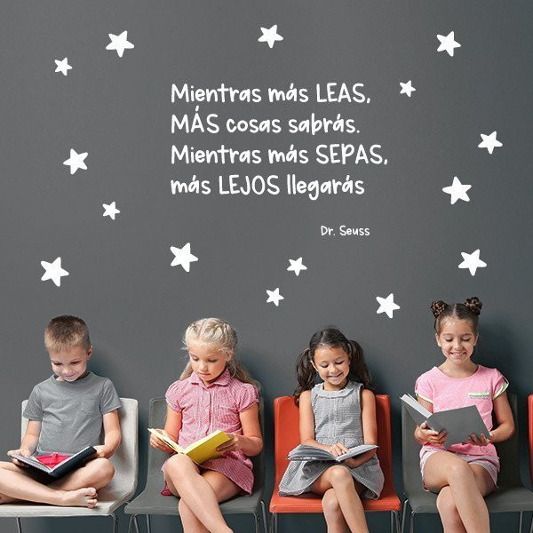 Fantàstics vinils decoratius amb frases plenes de significat. Perfectes per decorar parets de col·legis o habitacions infantils. Vinils personalitzables en mida i color, fàcils d'instal·lar i amb uns resultats espectaculars. Crea la teva pròpia combinació de colors i comença a gaudir de la teva nova decoració mural.