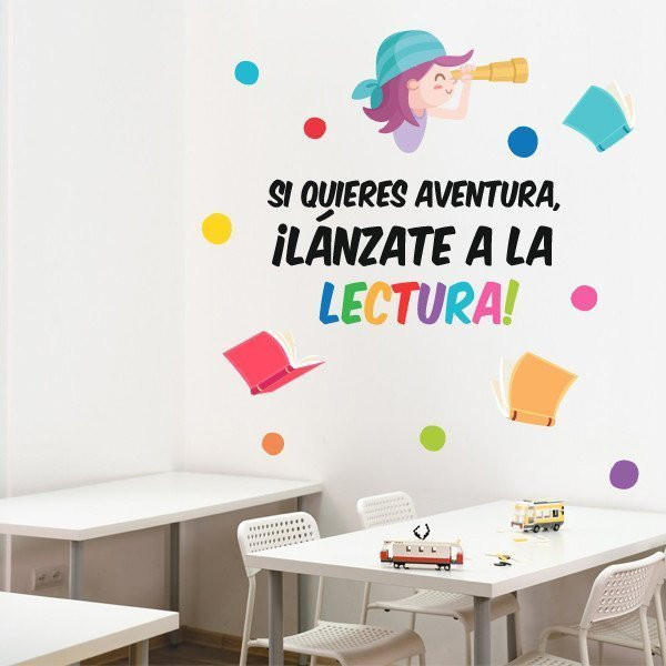 Decoració escoles i instituts en català - Llença't a la lectura - Vinils amb frases per a escoles i instituts