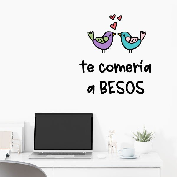 Vinil encantador amb l'expressió "et menjaria a petons" acompanyada de dos adorables ocellets fent-se un petó. Una proposta summament original per decorar qualsevol racó de casa teva.