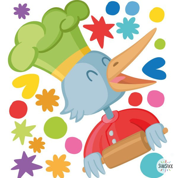 Ompliu de color i alegria el menjador del vostre centre educatiu amb els meravellosos vinils decoratius d'StarStick. Enganxeu-los a la paret, vidres, portes o mobles i feu que el vostre menjador sembli nou. Tots els nostres vinils són autoadhesius i molt fàcils d'instal·lar. Es poden enganxar en parets planes i fins i tot en parets lleugerament rellevades. Si teniu una paret molt gran, combineu aquest model amb els altres models dels animals cuiners. Aconseguireu un mural molt més gran i espectacular.