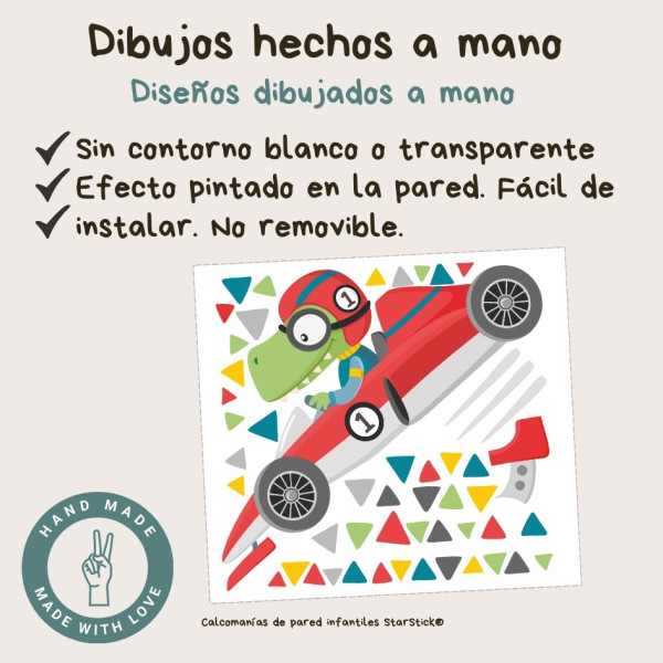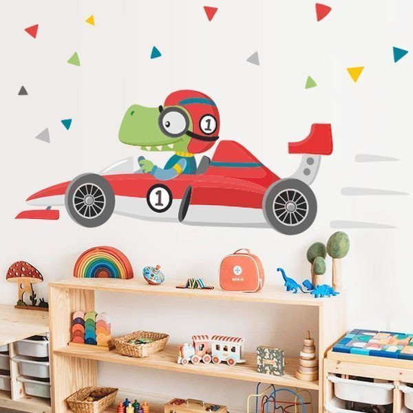 Personalitza el teu vinil amb nomÉs hora d’arrencar motors! El vinil decoratiu cotxe de carreres amb cocodril transforma les parets de les habitacions infantils en un escenari ple de velocitat, color i diversió.