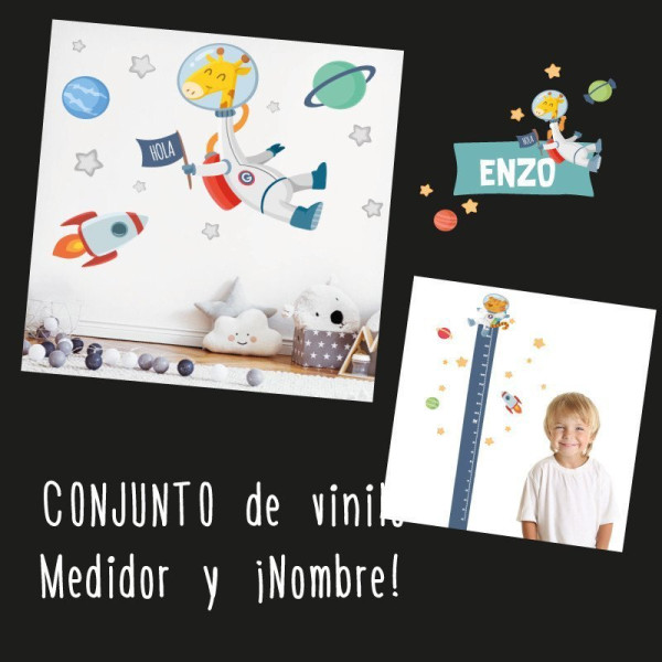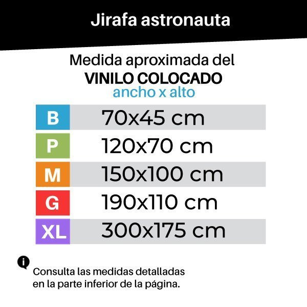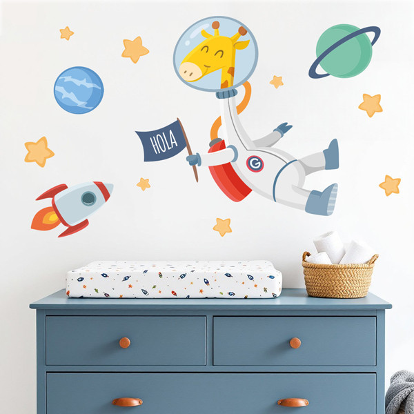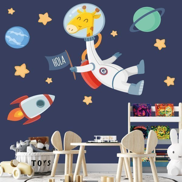 Personalitza el teu vinil amb nomUna girafa a l’espai! Aquest vinil infantil forma part de la nostra divertida col·lecció d’animals astronautes, pensada per transformar qualsevol habitació en un univers ple de fantasia.