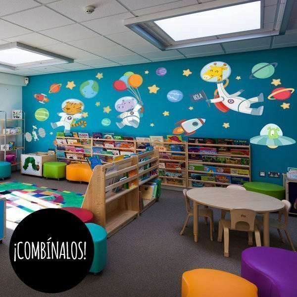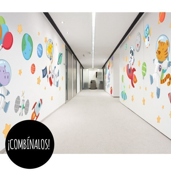Perfecte per decorar dormitoris de nadons, habitacions infantils, llars d’infants, escoles o hospitals. Les seves il·lustracions dolces i la temàtica espacial creen murals plens d’il·lusió i creativitat.