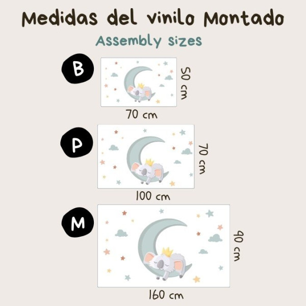 Personalitza el teu vinil amb nomAquest vinil decoratiu infantil amb un adorable koala dormint sobre la lluna és perfecte per crear un ambient tranquil, càlid i ple de tendresa a l’habitació del teu nadó.
