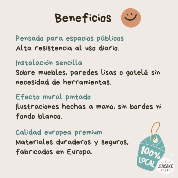 Anima les parets dels centres sanitaris amb els divertits vinils decoratius d'StarStick. Vinils autoadhesius amb il·lustracions d'animals jugant a ser metges. Combina els diferents models i aconsegueix una decoració mural espectacular!
