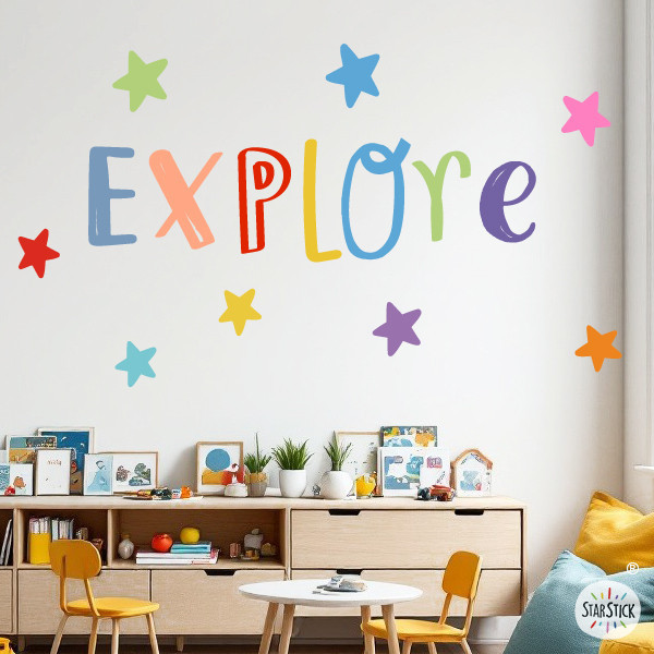 Divertits, educatius, motivadors i súper decoratius. Així són els vinils de disseny de StarStick. Perfectes per crear murals en centres educatius, col·legis, espais infantils o qualsevol paret a la que vulguis donar vida i color. Hi ha diferents paraules de la mateixa col·lecció. Combina-les al teu aire.