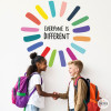 Extraordinaris vinils de paret per decorar centres educatius o espais públics. Vinils de gran qualitat, personalitzables en diferents mides i idiomes i molt fàcils d'instal·lar. Perfectes per decorar les parets creant ambients agradables, elegants i fomentant els valors de la igualtat i la diversitat. Cada peça és independent, es poden enganxar creant la composició que cadascú prefereixi. Tots som diferents. Decoració escoles i instituts en català - Tots i totes som diferents - Vinils educatius per a escoles i instituts
