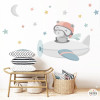 Decorate your baby’s nursery with this beautiful wall sticker featuring a pilot bear flying his airplane. Its soft pastel tones and illustrated style create a cosy, sweet and imaginative atmosphere.