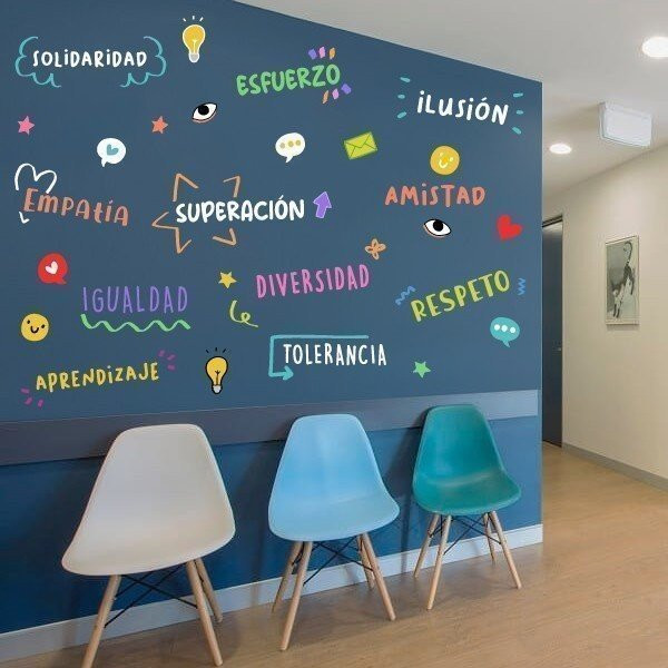 Make your classroom a truly special and inspiring place with our exclusive collection of decorative vinyls! Our designs are the key to completely transforming your classroom environment, creating a space where values and motivation merge in an exceptional way. With a variety of super original designs, our vinyls are not only visually attractive, but also add an integrative and fun touch to your educational spaces. Each vinyl is a work of art that communicates fundamental values.