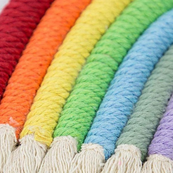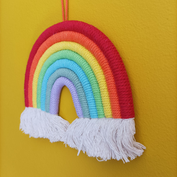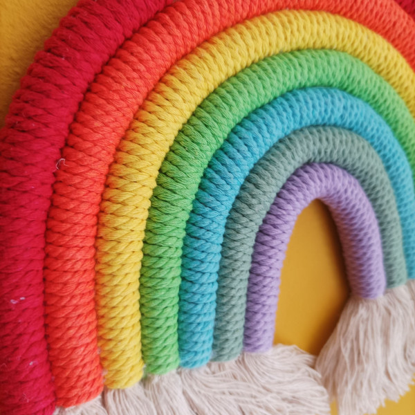 Decorate children's rooms or any corner of your house with these wonderful rainbows made of macramé. Decorative products that provide a beautiful and unique touch to all types of spaces. Hang it directly on the wall or in the corner of a piece of furniture and enjoy its simplicity, playfulness and elegance.