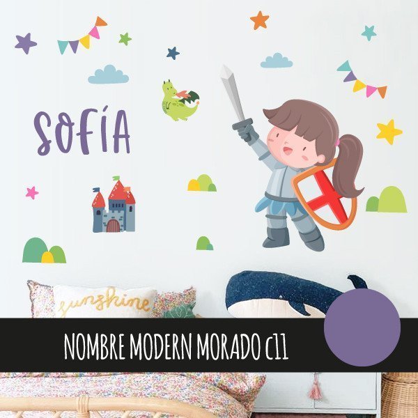 Personalize your wall decal with a nameWall stickers for girls - Medieval knight - Children's decoration