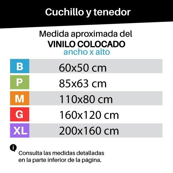 Knife, fork and Bon appetite. Vinyl to decorate dining rooms, kitchens, restaurants or picnic areas. Available in different sizes and colors. It can be pasted on walls, glass or any smooth surface.