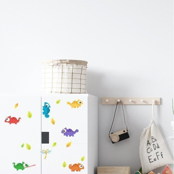 Vinyl with colored chameleons. Vinyl in laminated waterproof format. Ideal for decorating and personalizing any smooth surface.
