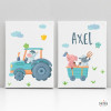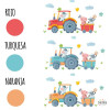 If your children love animals, tractors and country life in general, here is a pack of customizable prints that they will surely love. Prints with a hilarious tractor and a wheelbarrow full of animals. You can choose the color of the tractor that you like best: red, turquoise or orange. A real past!