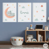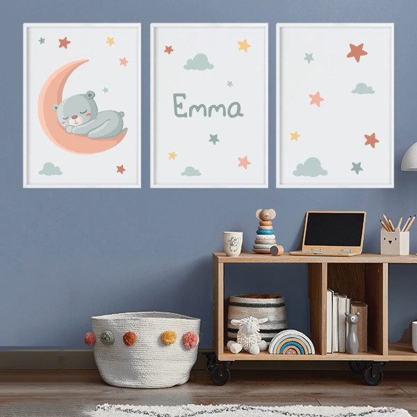 Personalize your wall decal with a nameBear on the moon - 3 Decorative paintings for babies, customizable