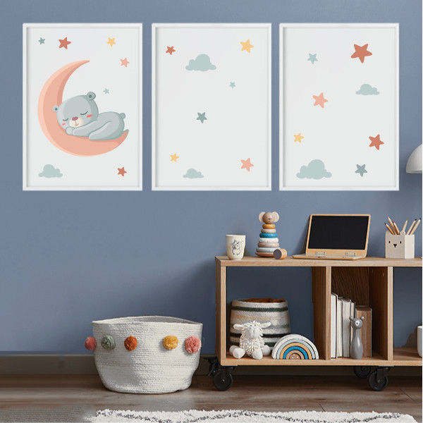 Bear on the moon - 3 Decorative paintings for babies, customizable