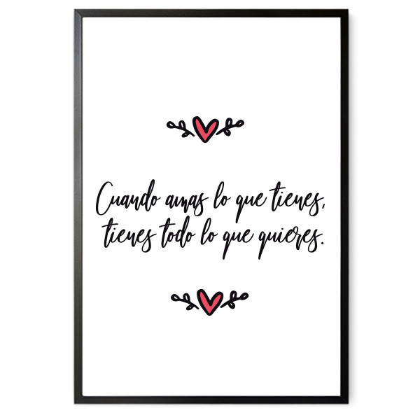 Decorative sheet with the phrase "When you love what you have, you have everything you want". Fantastic for decorating headboards, dining rooms, halls... Minimalist details that make your home a more welcoming space.