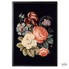 Discover the timeless elegance of our canvas-printed artwork, featuring a delicate illustration of flowers on a black background. This vintage-style design adds a touch of classic sophistication to any space.