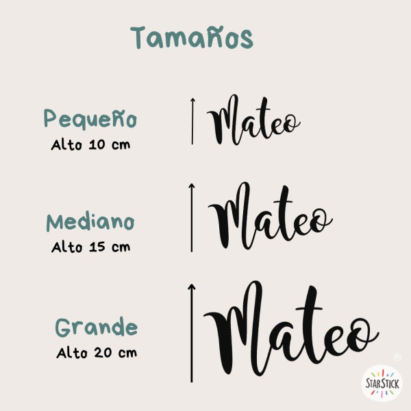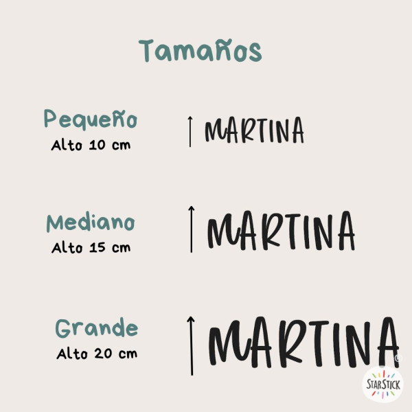 We offer three different sizes to personalize names. The "stated height" refers to the height of the tallest letter in the name you choose. We recommend opting for the same size as a standard vinyl to achieve an optimal effect.