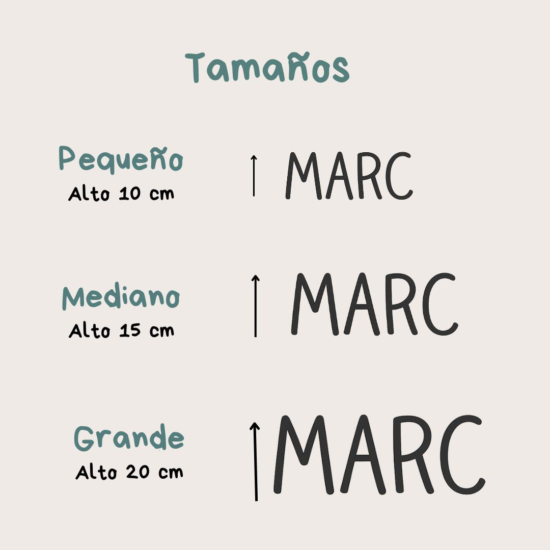 The upper and lower case letters will be according to the font indicated in the photographs. Name width may vary; The reference is the height of the letters. The name will never exceed 120 cm in length.