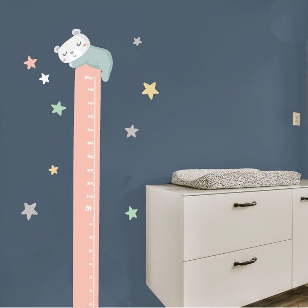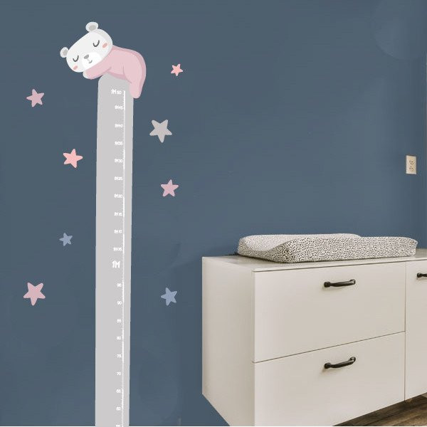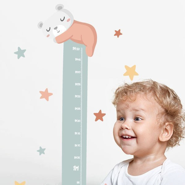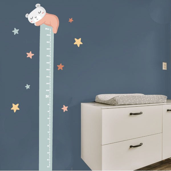 Measuring vinyl with a teddy bear sleeping on the moon. Wall sticker to measure the little ones and decorate their walls.