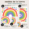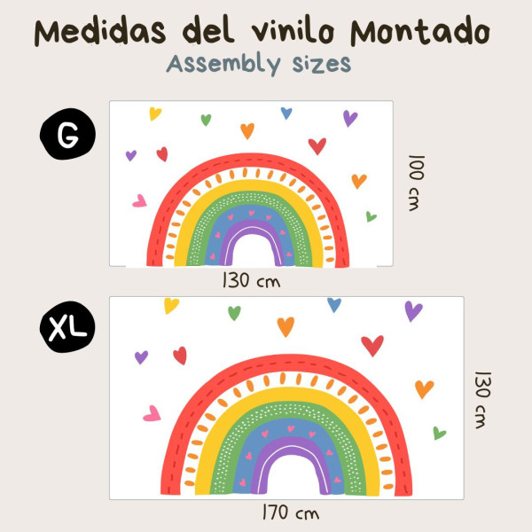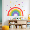 Wall sticker for decorating children's rooms. This pack includes a beautiful rainbow accompanied by hearts in various colors and sizes, perfect for creating a cheerful and lively atmosphere. Additionally, you can personalize the sticker with one or two names, adding a unique and special touch to the room's decor.