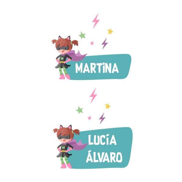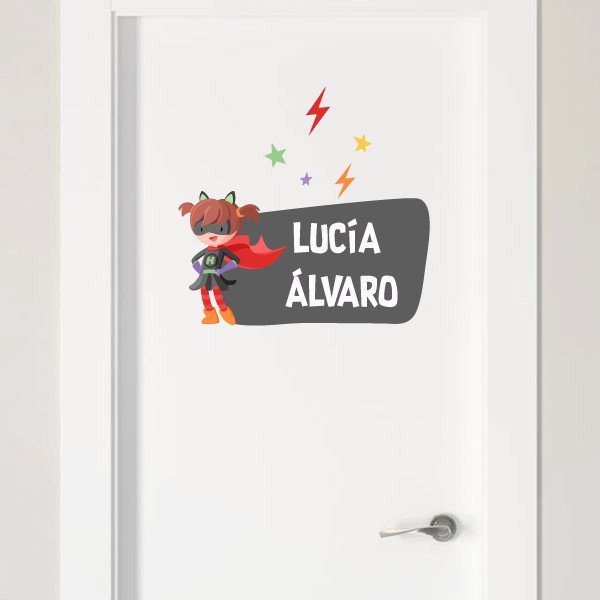 Children's vinyl to decorate doors, walls, cribs, furniture... Customizable with one or two names and combinable with the wall vinyl of the superheroine.