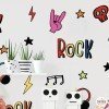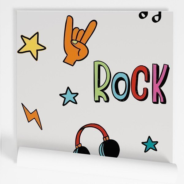Youth wallpaper with Punk rock motifs. A colourful, brave and fun design. Perfect for decorating teenage rooms.