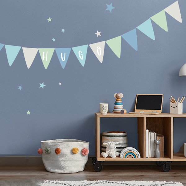 Decora paredes, muebles o cualquier superficie lisa con estos maravillosos banderines de vinilo personalizables con un nombre. El pack incluye 14 banderines que podrás pegar con la distribución que quieras y 10 estrellitas de diferentes tamaños para complementar el mural.