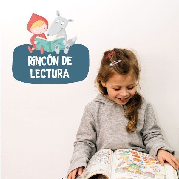 Caperucita y el lobo leyendo - Cartel de señalización. Vinilo infantil