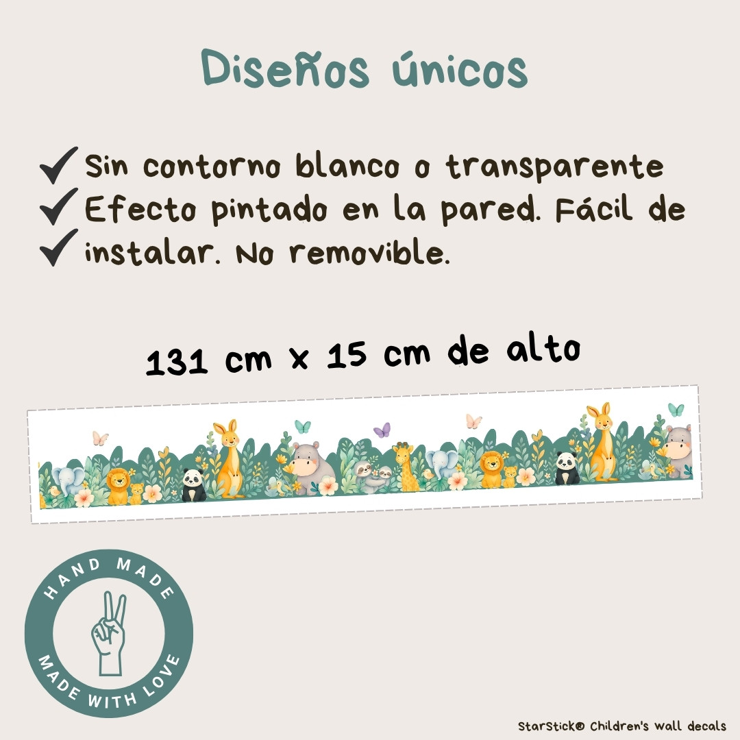 Cenefa infantil Animales de la Selva · Cenefa autoadhesiva pared niños · StarStick