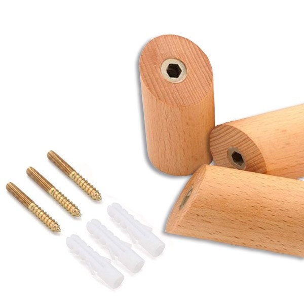 Pack con 3 colgadores de madera. Prácticos, fáciles de instalar y muy versátiles, ya que se pueden instalar en la pared con la distribución que a cada uno le convenga. Productos de diseño para tenerlo todo en orden.