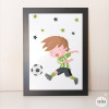 Lámina decorativa impresa sobre canvas con un divertido futbolista chutando la pelota. Cuadros decorativos para decorar de manera original las habitaciones de niños y niñas.
