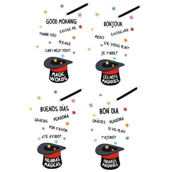 Que nadie se olvide de lo mágicas y maravillosas que pueden ser algunas palabras. Vinilos decorativos para decorar de manera original y divertida las paredes, puertas cristales o muebles de los centros educativos. StarStick ofrece una gran cantidad de modelos disponibles en diferentes tamaños, colores e idiomas.