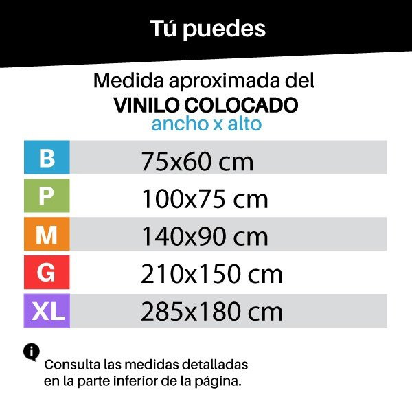 Medidas aproximadas del vinilo montado (ancho x alto)