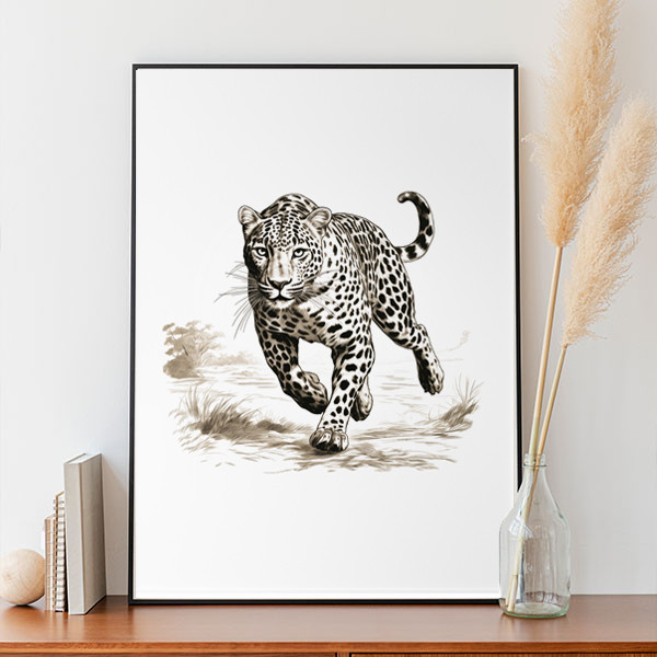 Tigre abanzando a toda velocidad. Lleva la majestuosidad del tigre a tu hogar con esta lámina para enmarcar. Impresa en alta calidad, esta lámina captura la belleza y la fuerza de este felino salvaje en todo su esplendor.