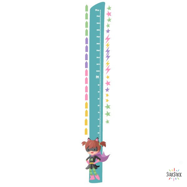 Vinilo medidor a juego con el vinilo mural de la valiente superheroína. Vinilos muy divertidos y de gran calidad para decorar paredes y muebles.