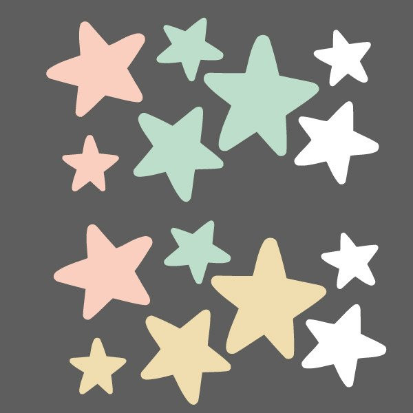 Haz crecer tu mural con un extra pack de estrellas complementarias. Puedes elegir si las quieres mint+blanco o mint+gris.