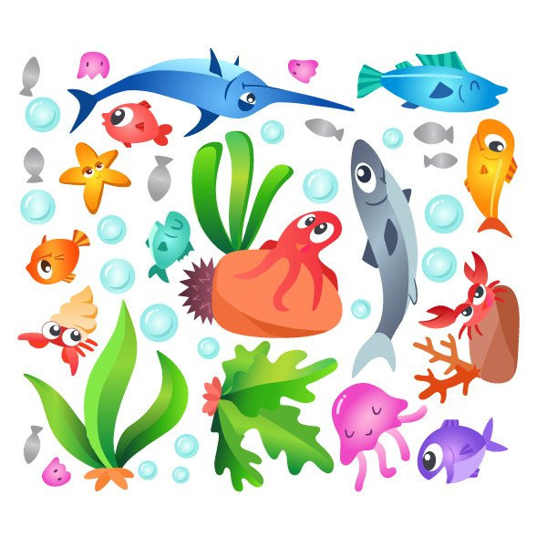 Vinilo con peces laminado súper resistente i lavable. Vinilos ideales para personalizar juguetes, paredes, lavabos... ¡Pon color en cualquier rincón!