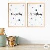 Láminas decorativas con frases. Perfectas para decorar espacios educativos, bibliotecas, zonas de juego… En el apartado “Combinaciones” anota el idioma que deseas y el color de las estrellas. Puedes elegir hasta 3 colores diferentes o C38 si las deseas en multicolor.