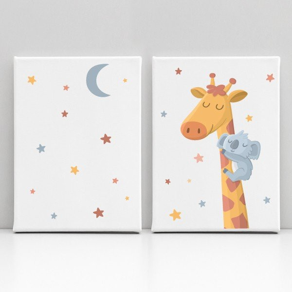 2 Cuadros infantiles personalizados – Jirafa y koala para decorar habitaciones