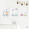 Pack de 3 láminas de cuadro infantiles - Tren azul con animales