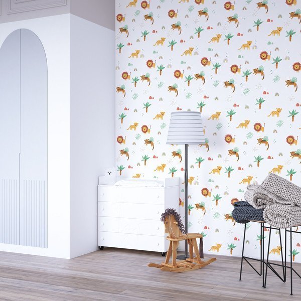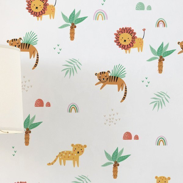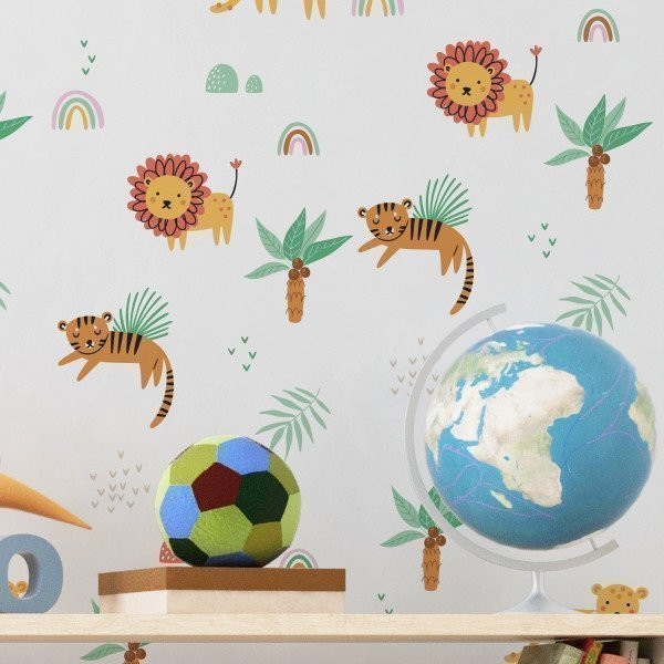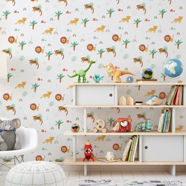 Simpáticos tigres y leones para decorar habitaciones infantiles. Una original manera de decorar las paredes o muebles de las habitaciones infantiles. Papeles de gran calidad, lavables y fáciles de instalar.