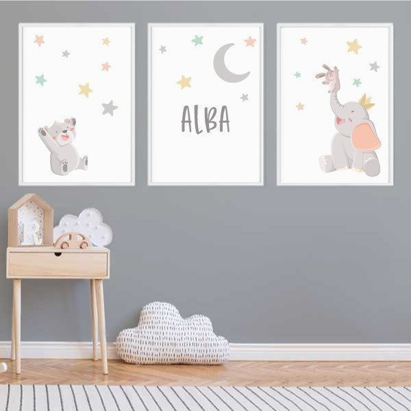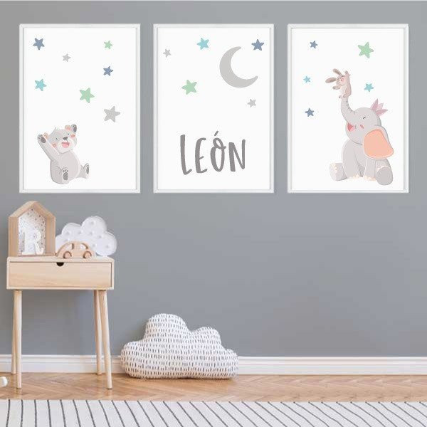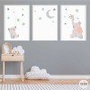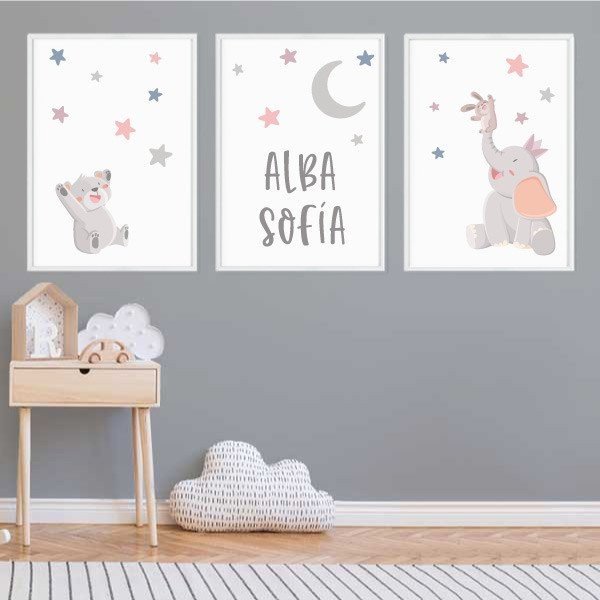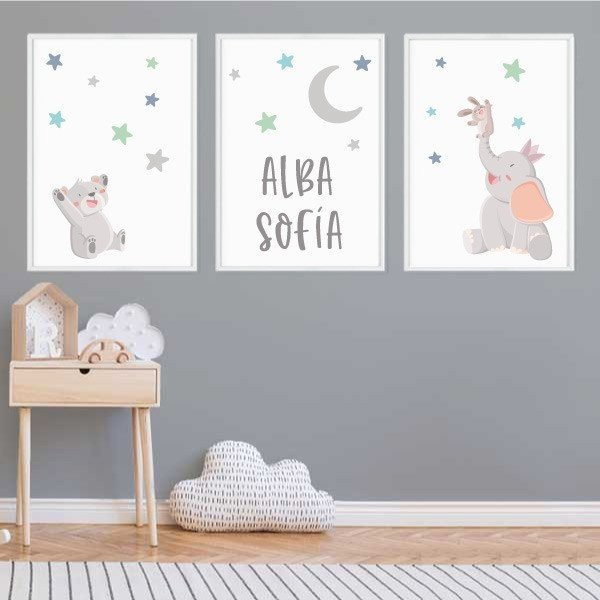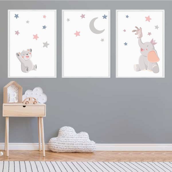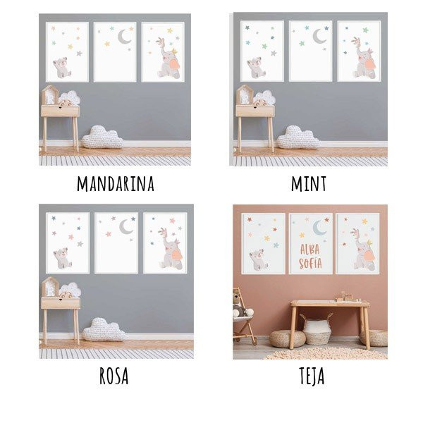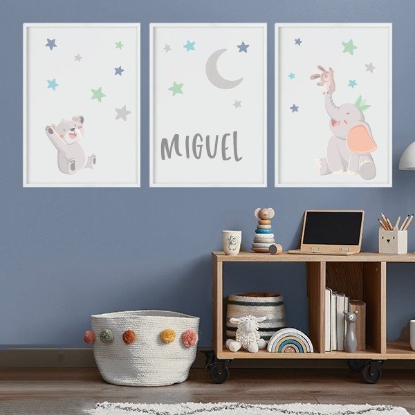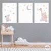 Pack de 3 cuadros infantiles - Animales tocando la luna