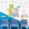 Vinilo biblioteca escolar dragón y caballero leyendo – Decoración educativa infantil pared